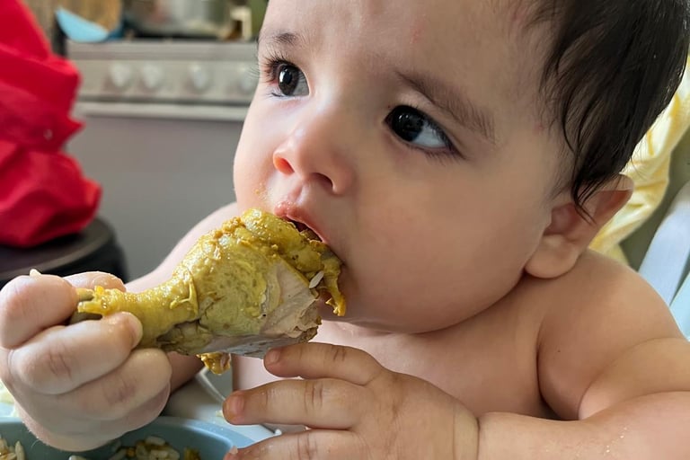 La teoría era hermosa: Jamie podía explorar texturas, llevarse los trocitos él mismo al plato. Y funcionó, claro que sí. Vimos esos primeros intentos graciosos, la coordinación ojo-mano-boca en acción.